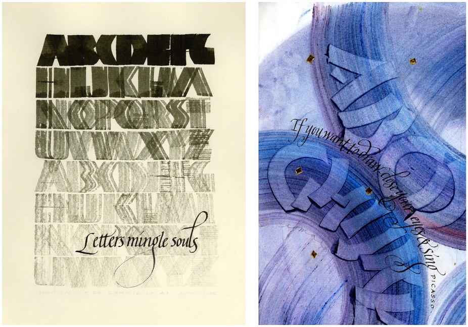 Carrie has been teaching calligraphy and related subjects for over 35 years. Following completion of a certificate program in graphic art and design she started a free-lance calligraphy and graphic arts business, and has worked as a calligrapher for the County of Los Angeles. She has taught at many international calligraphy conferences, UCLA Extension, Brandes Art Institute, Hughes Aircraft, RAND Corporation, and guilds across the US, Canada and in Finland. She is past President of the Society for Calligraphy, Los Angeles and has been the Director of the Letters California Style conference for 15 years. She has published a book entitled “Dancin’ Pen” which is in libraries across the world.